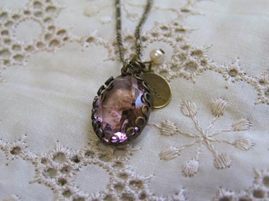 グラスストーンは淡いヘリオトロープかライラックといった控えめな色味。