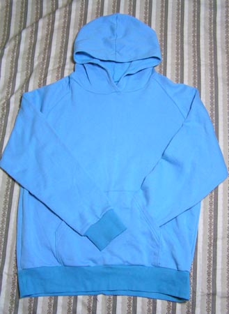 フードが別生地だったら襟リブは欲しいけど、身頃と同じ生地を使ったのでいいかな、と。